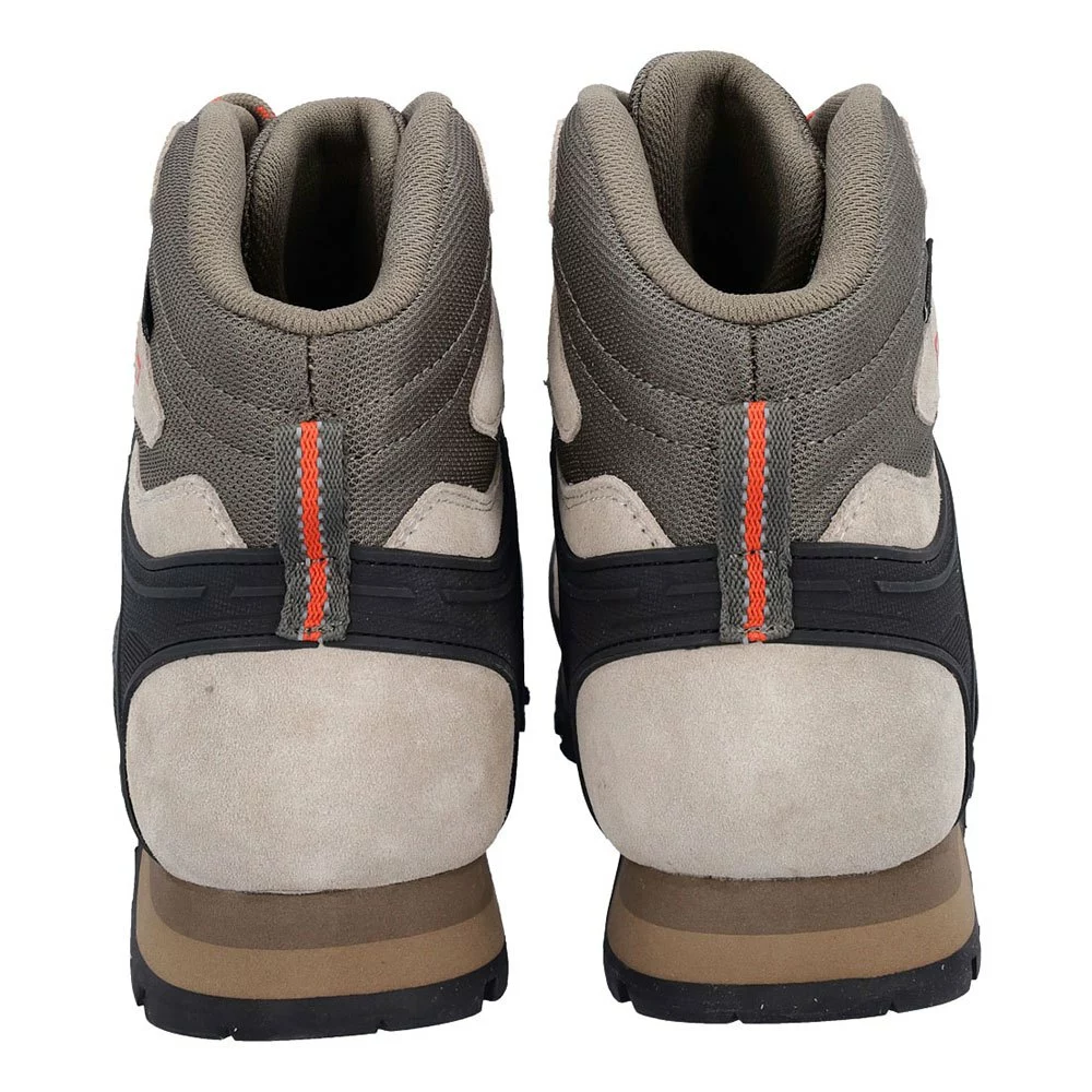 Er hat eine umfangreiche Schnürung für eine bessere Anpassung, ein Obermaterial aus Wildleder mit Mesh-Details, eine mikroporöse EVA-Zwischensohle und ein Vibram TSAVO 1206-Profil.