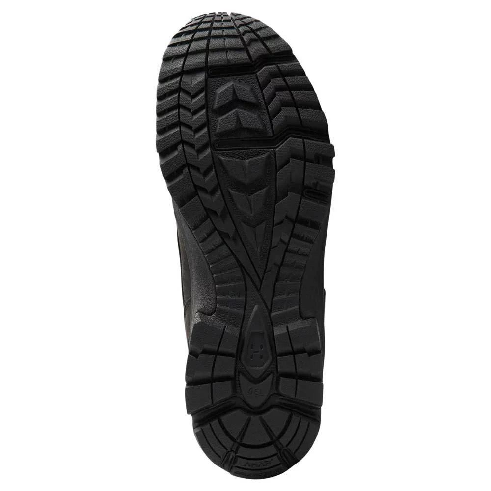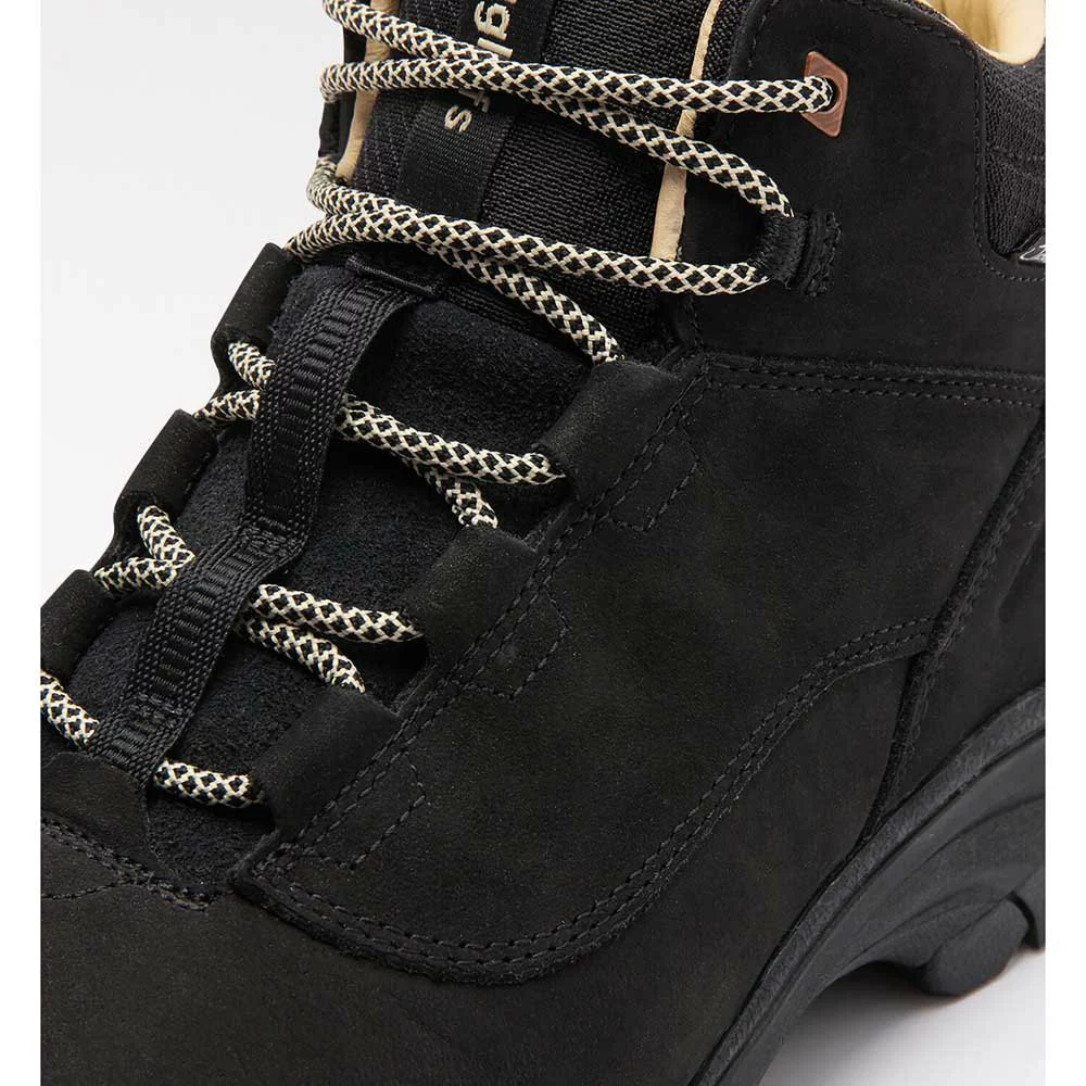 Die Konstruktion aus hochwertigem Leder in Kombination mit wasserabweisendem Proof-Segeltuch begünstigt die Leistung in regnerischen Klimazonen. Das geflochtene Befestigungssystem, das mit Segeltuchbändern verstärkt ist, bietet mehr Stabilität und Halt in unebenem Gelände. Die Zwischensohle aus Gummi verfügt über Geleinsätze, die bei jedem Schritt für mehr Dämpfung und Komfort sorgen.