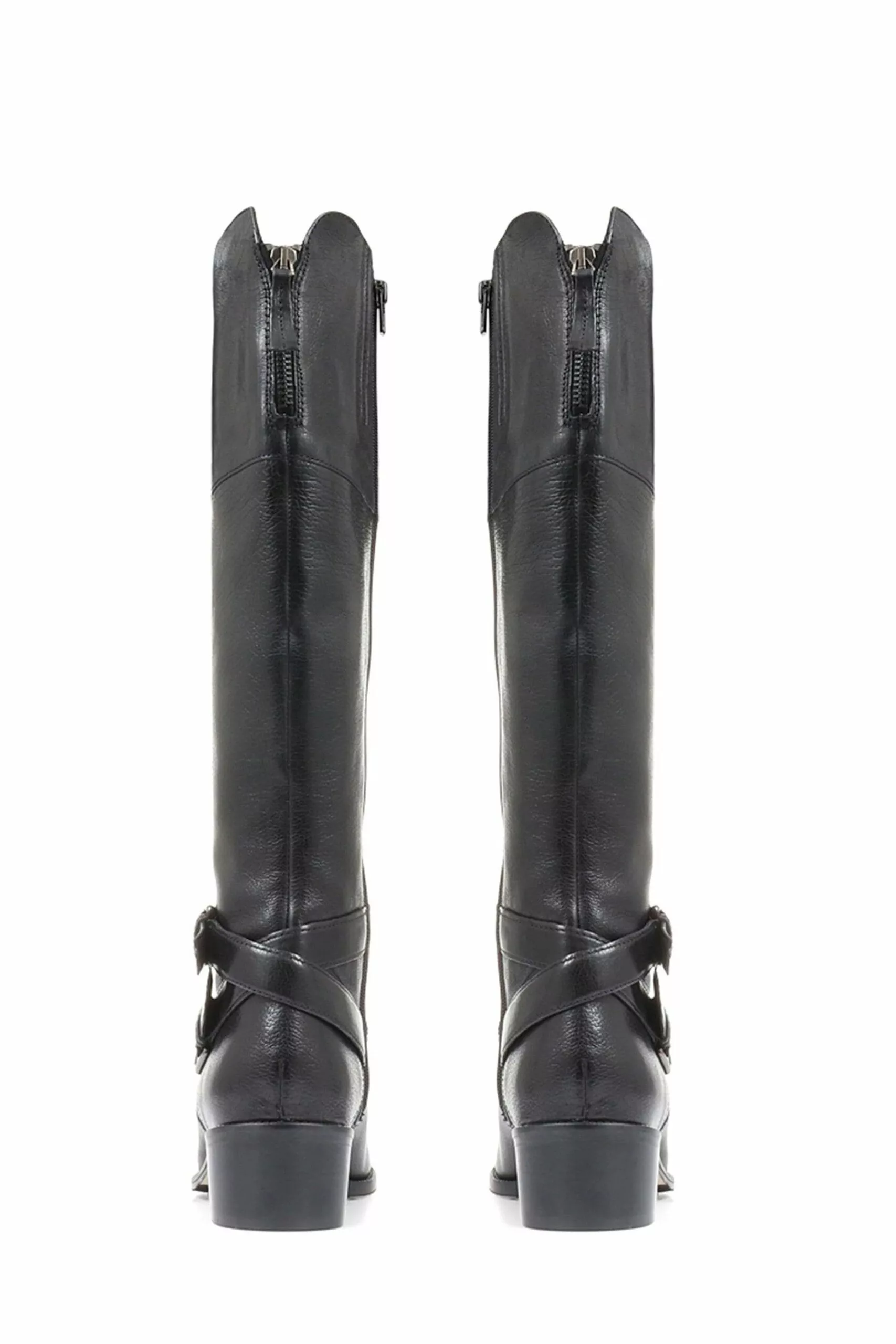 Jones Bootmaker Phoebe Kniehohe Lederstiefel, Schwarz