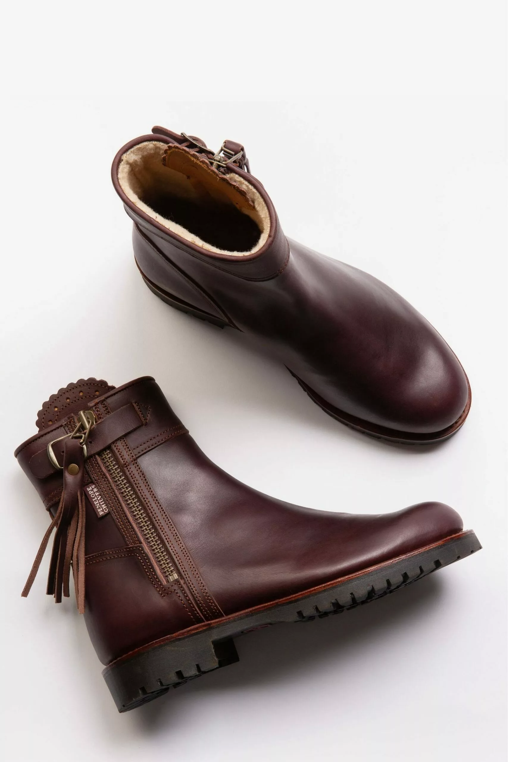 Lederstiefel Mit Wollfutter Und Quaste, Kastanienbraun