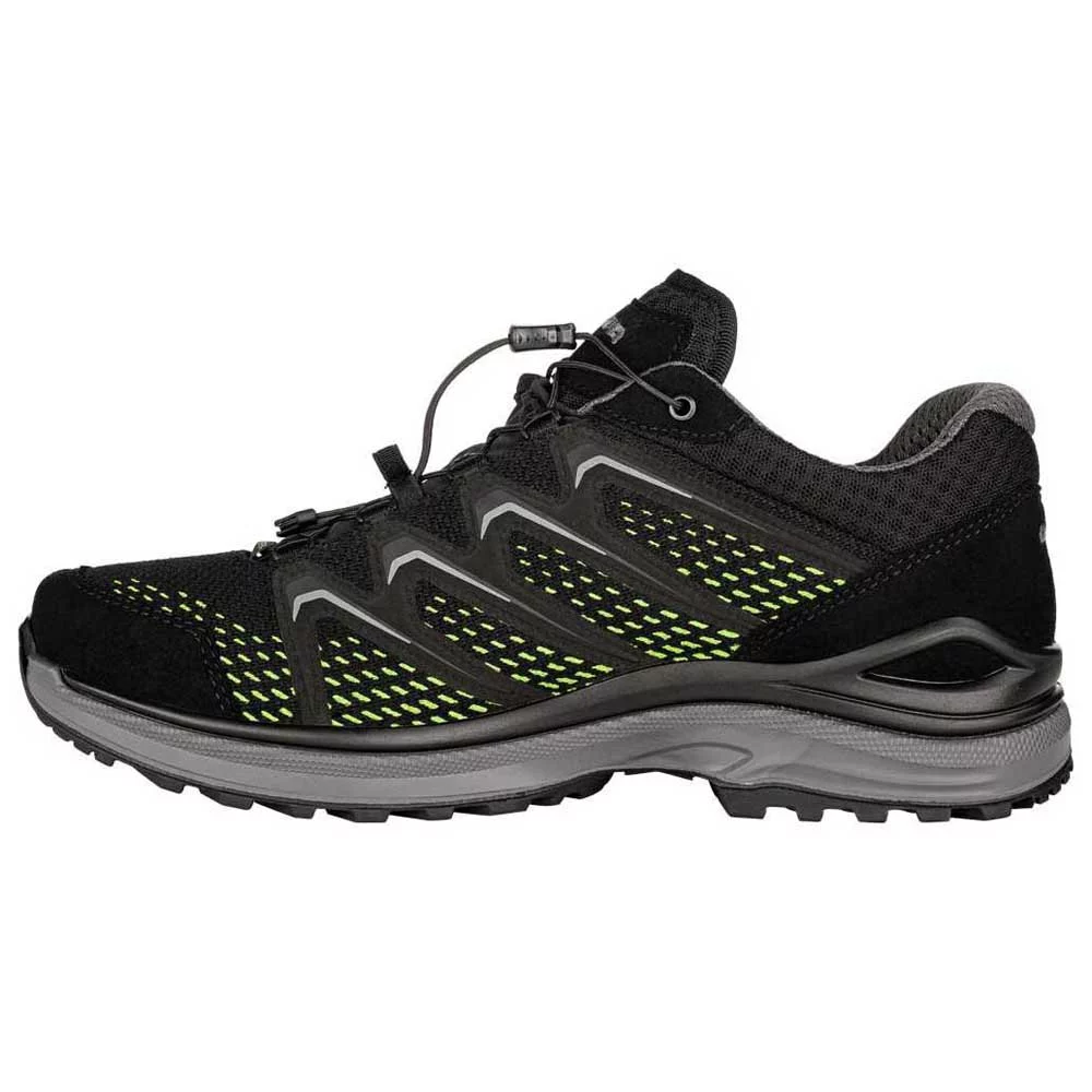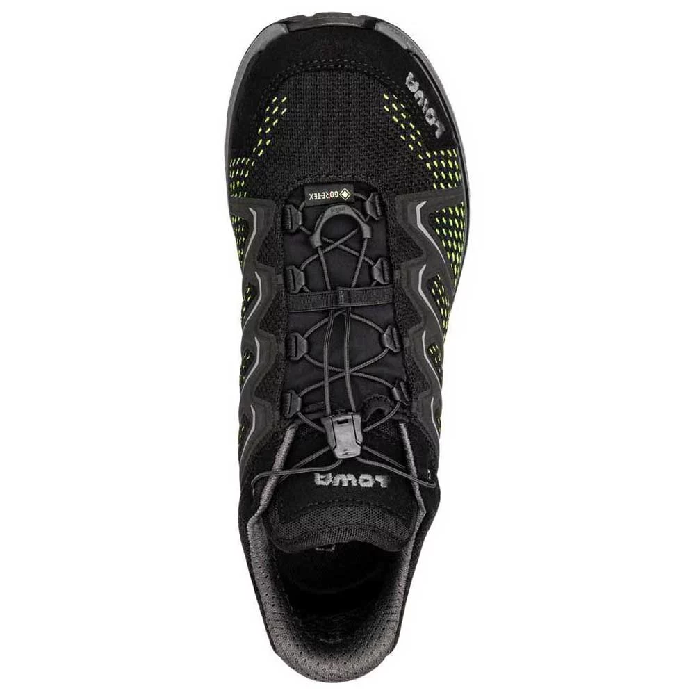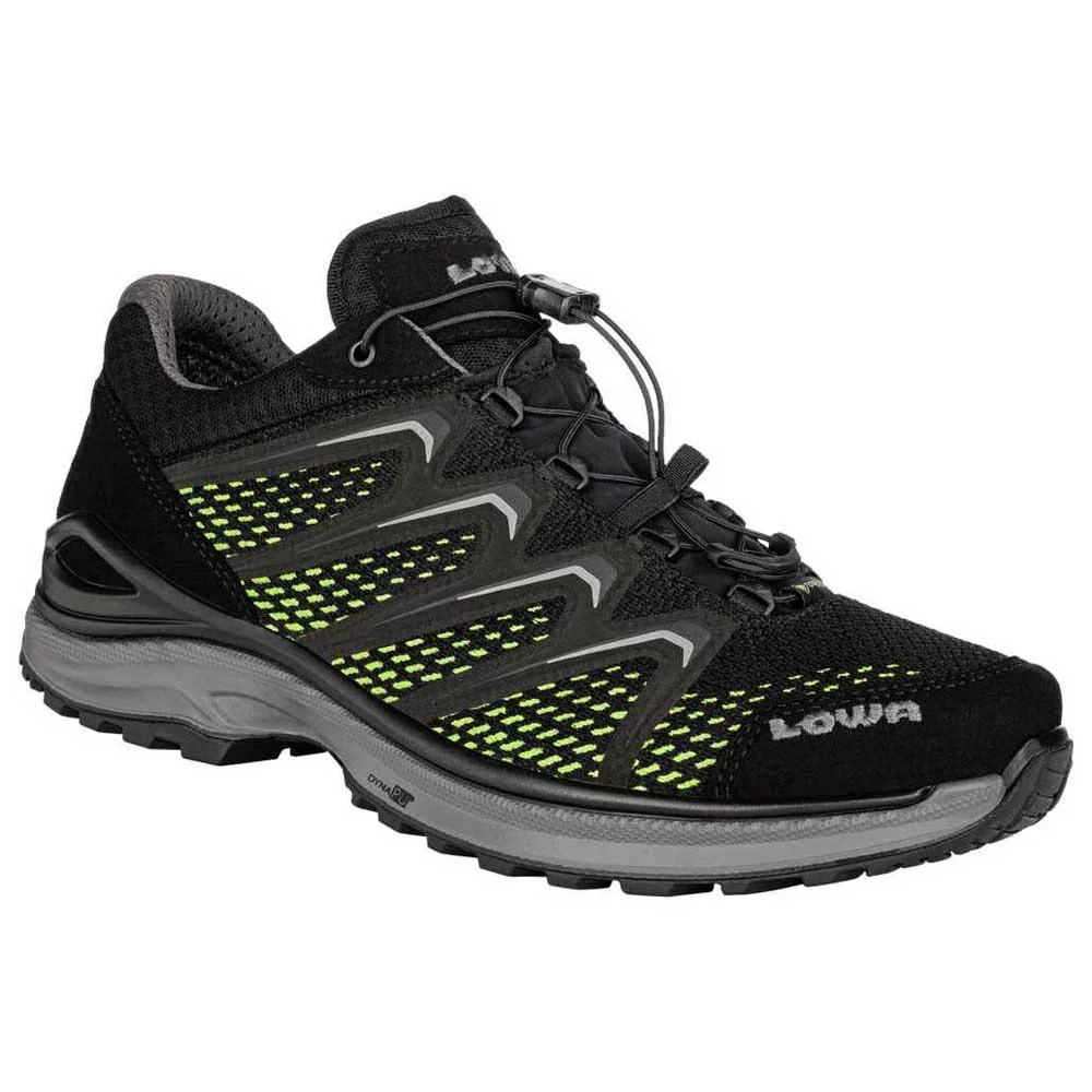 Dieser leichte und hoch atmungsaktive Multitalent-Schuh verfügt über eine doppelt spritzgegossene Lowa-Dynapu®-Sohle, die selbst unter härtesten Bedingungen zuverlässigen Komfort bietet. Die innovative Lowa Monowrap®-Technologie bietet optimale Fußführung bei jedem Schritt auf anspruchsvollem Gelände. Sein hoch atmungsaktives Mesh-Material ist genauso robust. Dank der darin integrierten Gore-Tex-Membran ist der sportliche Halbschuh nicht nur wetterfest, sondern hält die Füße auch bei schweißtreibenden Aktivitäten dauerhaft trocken. Auch sonst funktioniert das atmungsaktive Multitalent wie ein Uhrwerk: Mit Hilfe seiner praktischen Speed-Lace-Technologie lässt sich der Sportschuh schnell und einfach an die individuellen Bedürfnisse anpassen. Der luftig leichte und wasserdichte Multifunktionsschuh fühlt sich auf jedem Terrain zu Hause – egal ob im Urlaub oder in der Freizeit. Die griffige Lowa-Enduro-Evo-Sohle dieses sportlichen Alleskönners wird mit Sicherheit am Ende eines jeden Ausflugs etwas mehr Distanz zurücklegen als ursprünglich geplant.