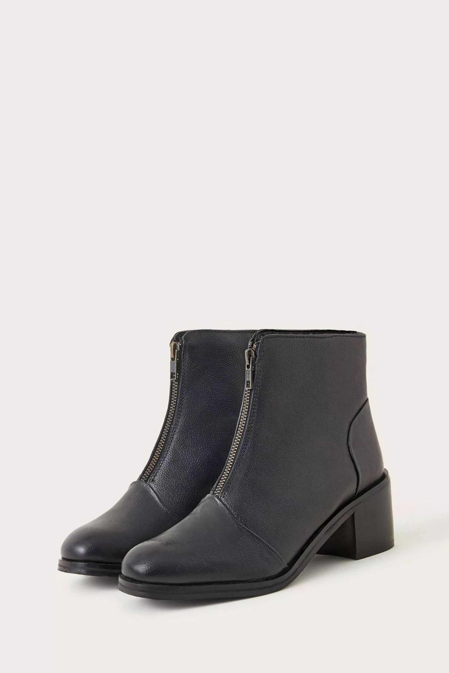Monsoon Lederstiefel Mit Dicker Sohle Und Reißverschluss Vorn, Schwarz