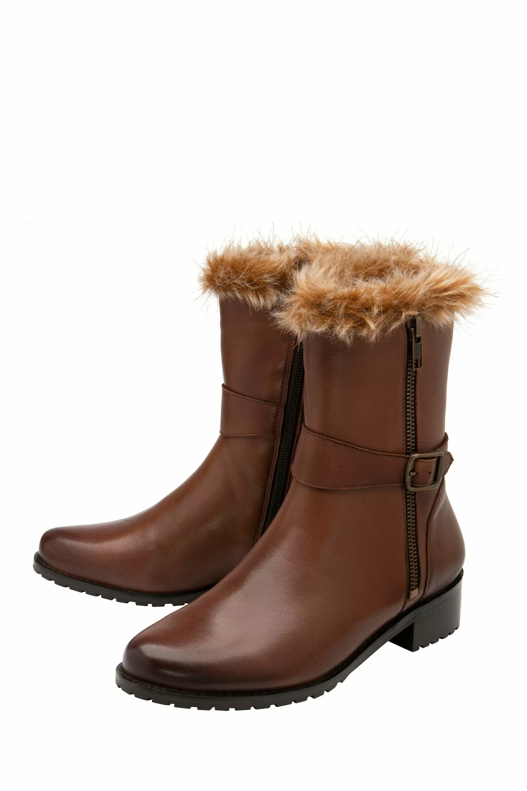 Ravel Mittelhohe Lederstiefel Mit Reißverschluss Und Blockabsatz