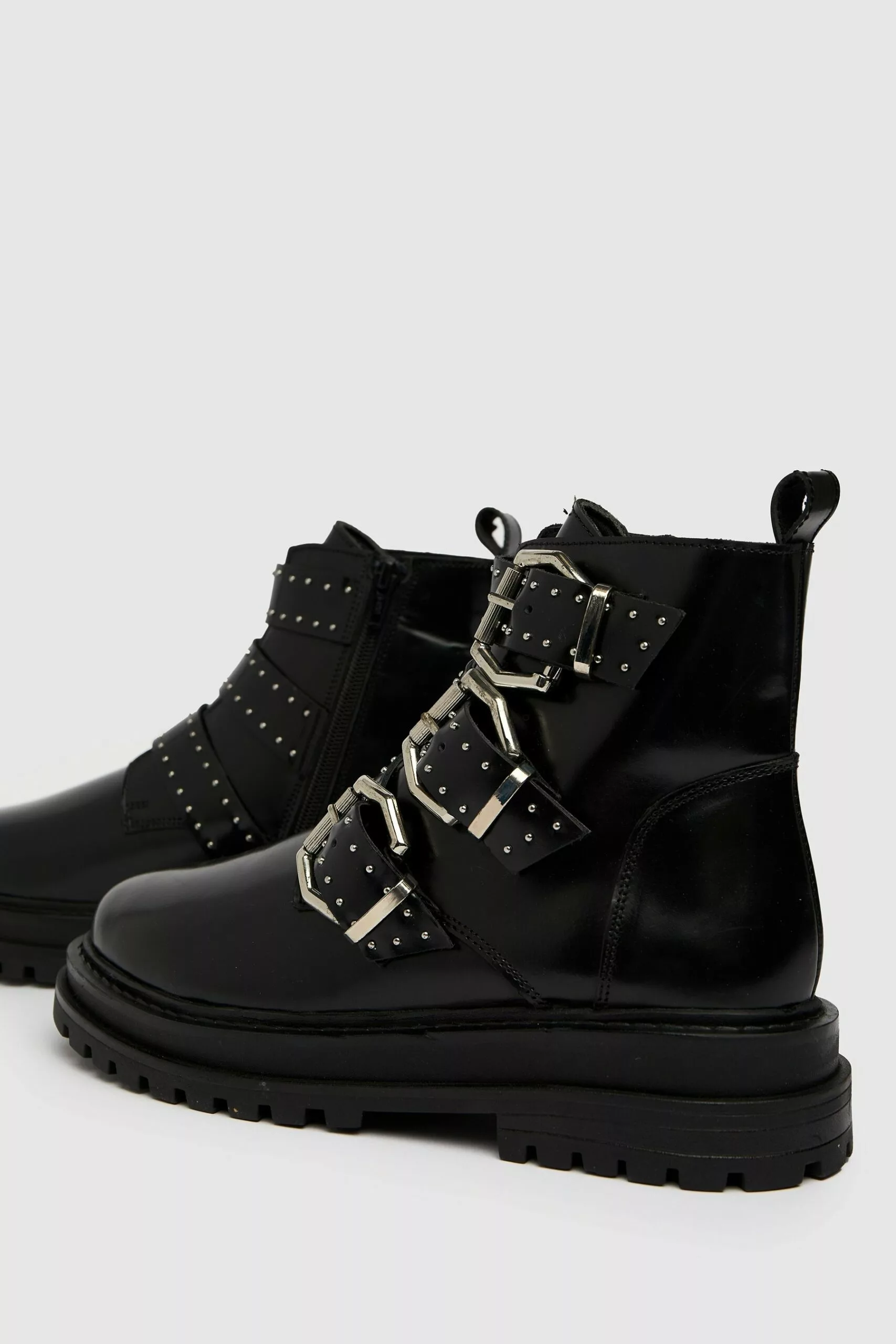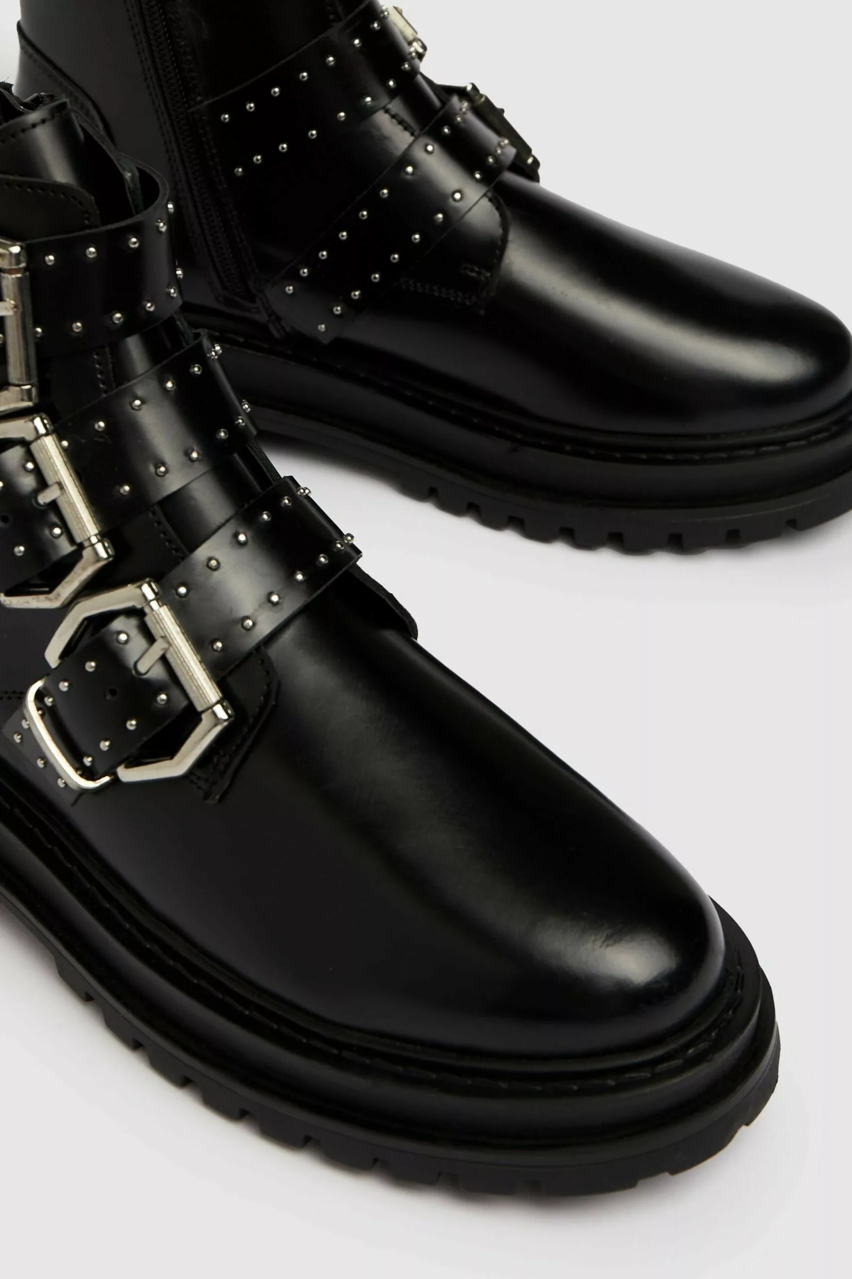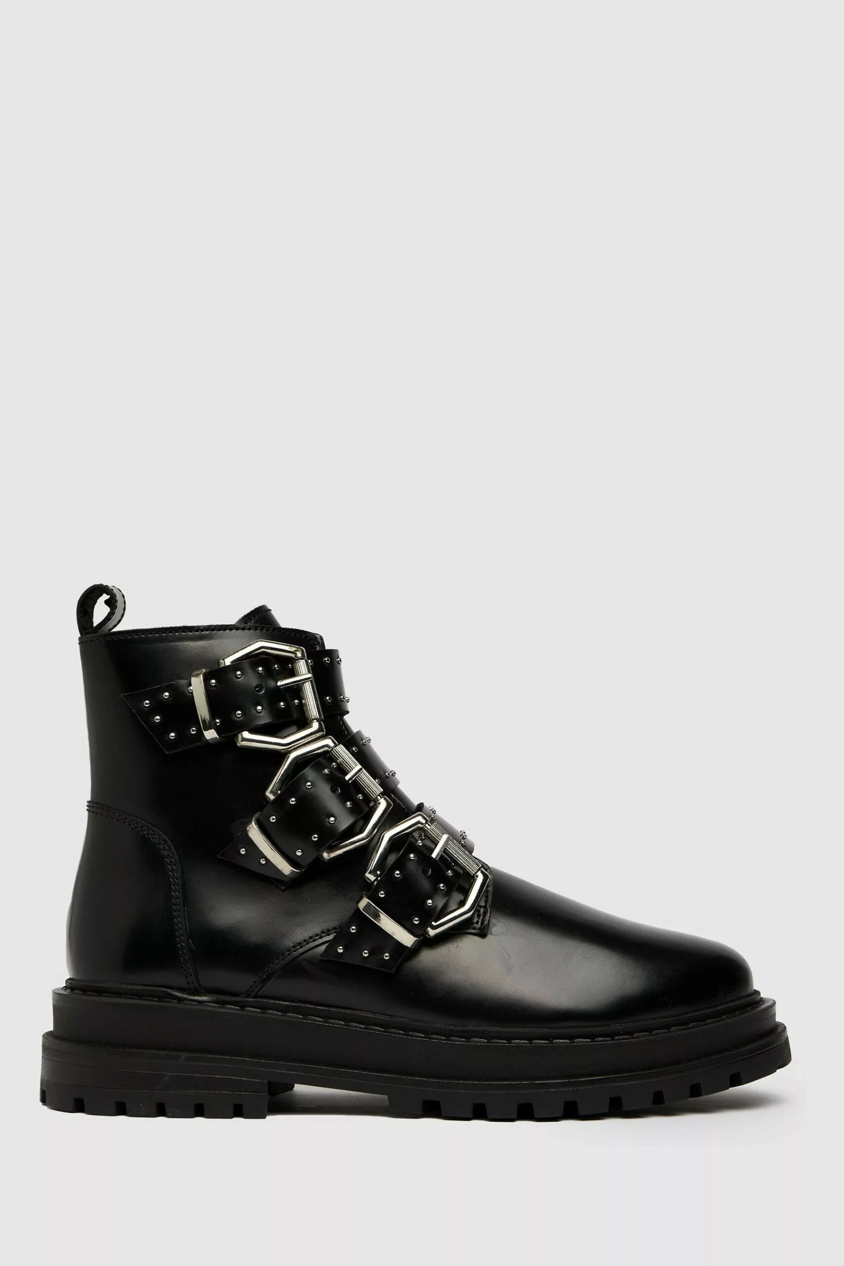 Schuh Alyssa Lederstiefel Mit Schnallenriemen, Schwarz